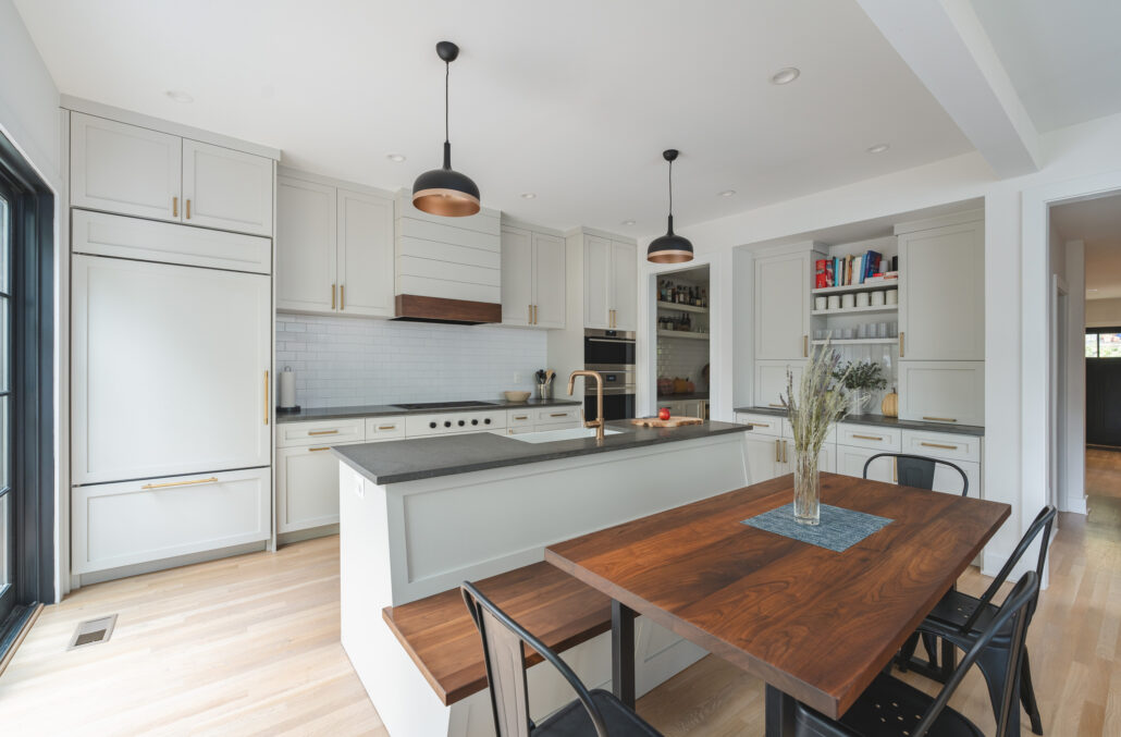 Create a functional and aesthetically pleasing kitchen space that supports both everyday family use and frequent entertaining.