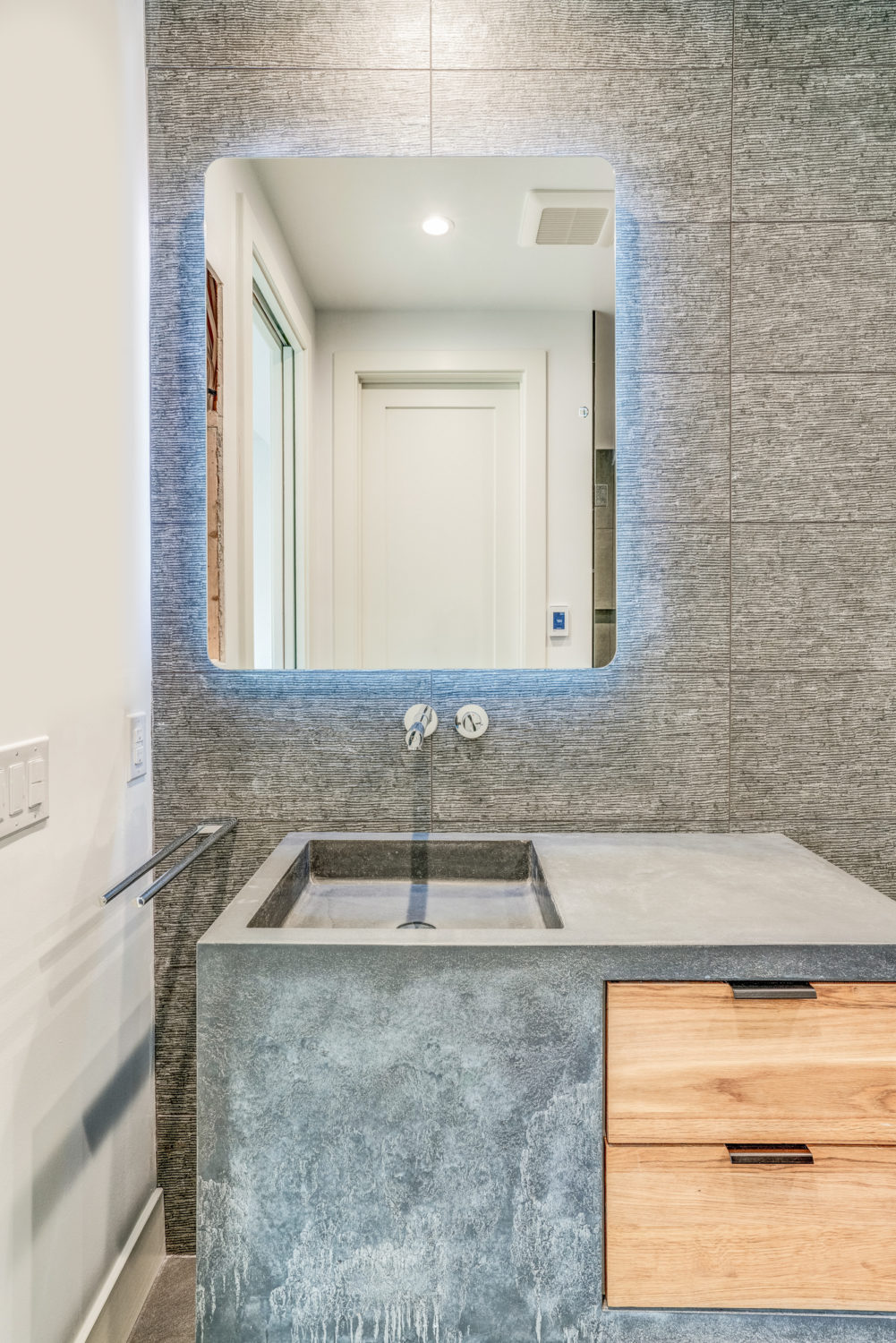 - Custom concrete and antique furniture vanities used in all the bathrooms.